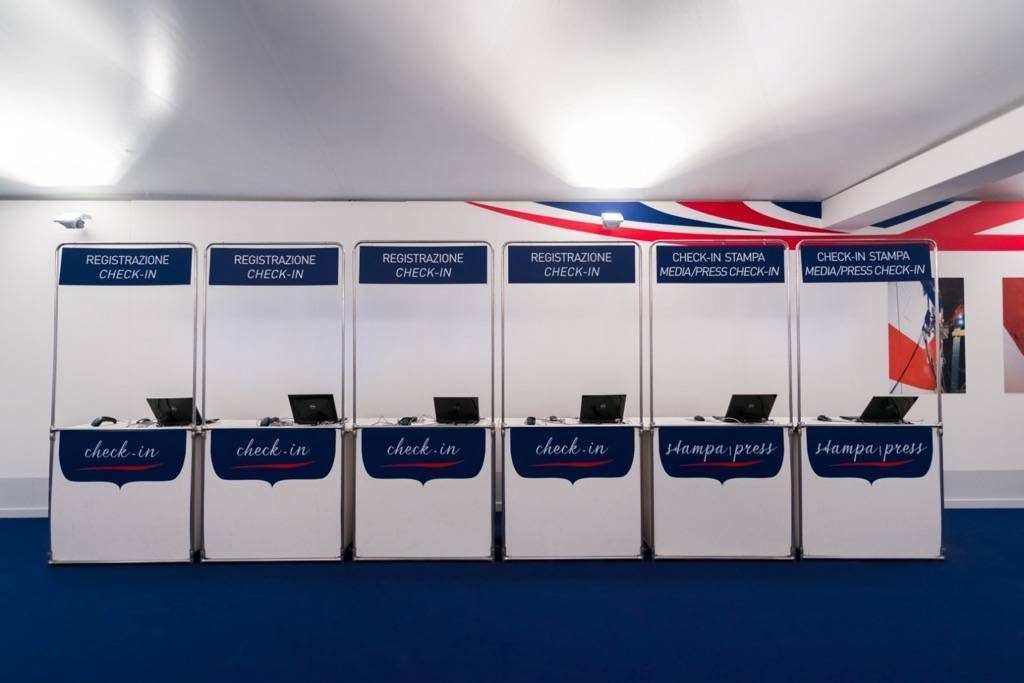 Per la cerimonia di consegna è stata realizzata sul molo un area check in di circa 1000 mq, allestita per l’occasione con pareti in legno tinteggiate di bianco, blu e grigio, impreziosite da scritte viniliche e tridimensionali, quadri raffiguranti le fasi di lavorazione della nave, pavimentazione in legno ignifugo rivestito di moquette di colore blu, più di 100 esemplari di piante fiorite, regia dell’evento e sistemi di sicurezza metal detector.
